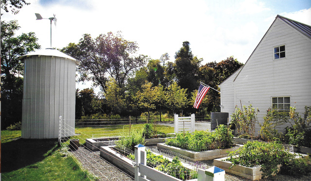 Lou said the hardwood floors came from sustainable forests, the counters were recycled glass, and the water system included an underground cistern that was used to flush toilets and water the garden. A bit more tweaking would make the water drinkable. The kitchen backsplash came from recycled aluminum from airplane fuselages. The front walkway was made of Pennsylvania bluestones slabs. LEED points were given for building materials that came from within 500 miles. The shrubs and trees the Weisses planted on the back hillside were native species, and the lawn was a special fescue that stayed low and needed only occasional mowing.